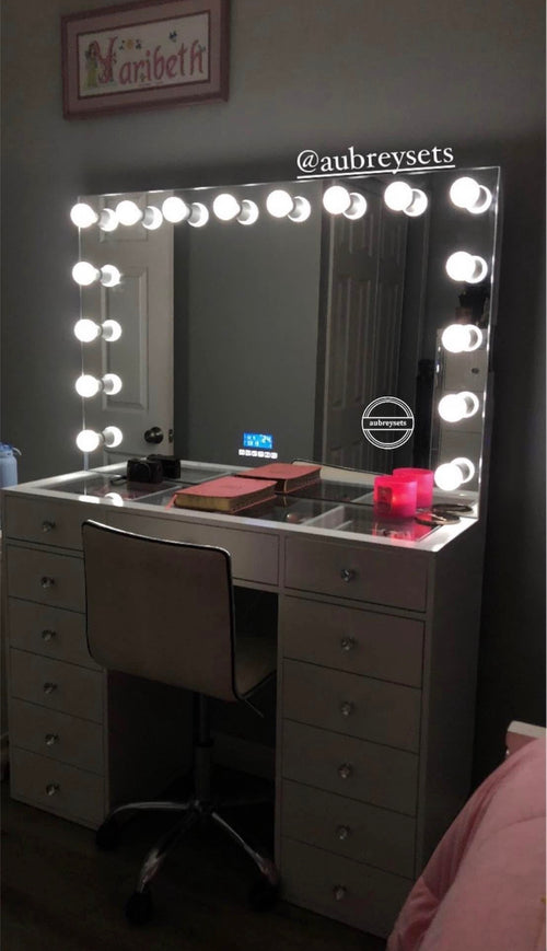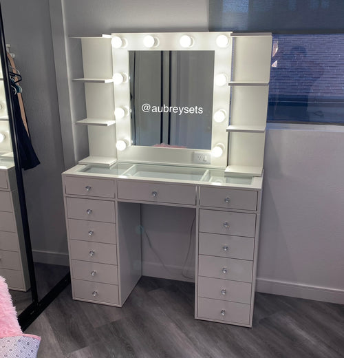 Bluetooth vanity set with 2 lack shelves